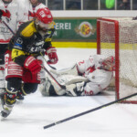 Diepolder EC Peiting trifft gegen EX ECP Goalie Andreas Magg (HC Landsberg)