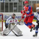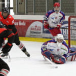Diepolder EC Peiting trifft gegen EX ECP Goalie Andreas Magg (HC Landsberg)