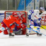 Diepolder EC Peiting trifft gegen EX ECP Goalie Andreas Magg (HC Landsberg)