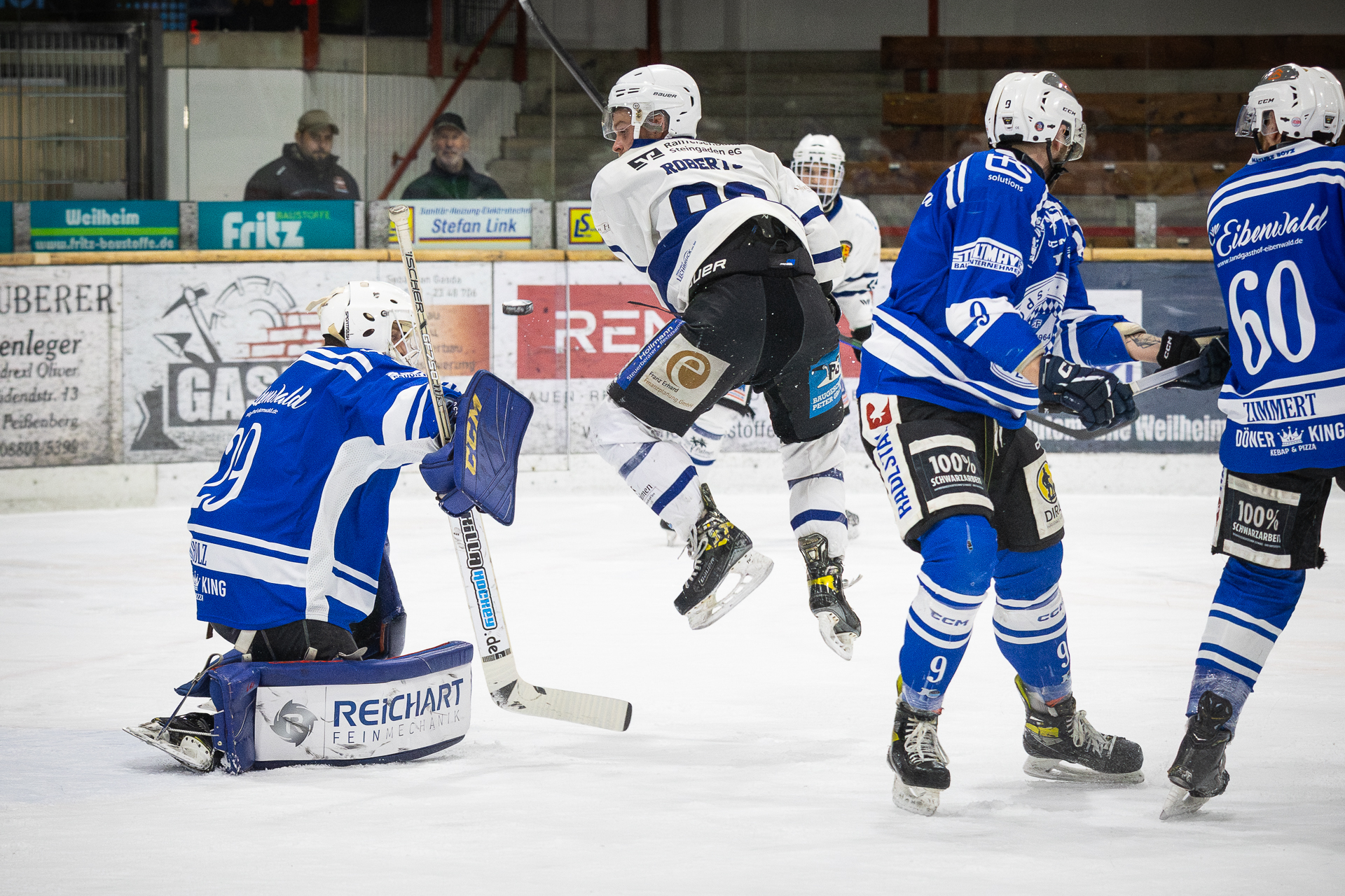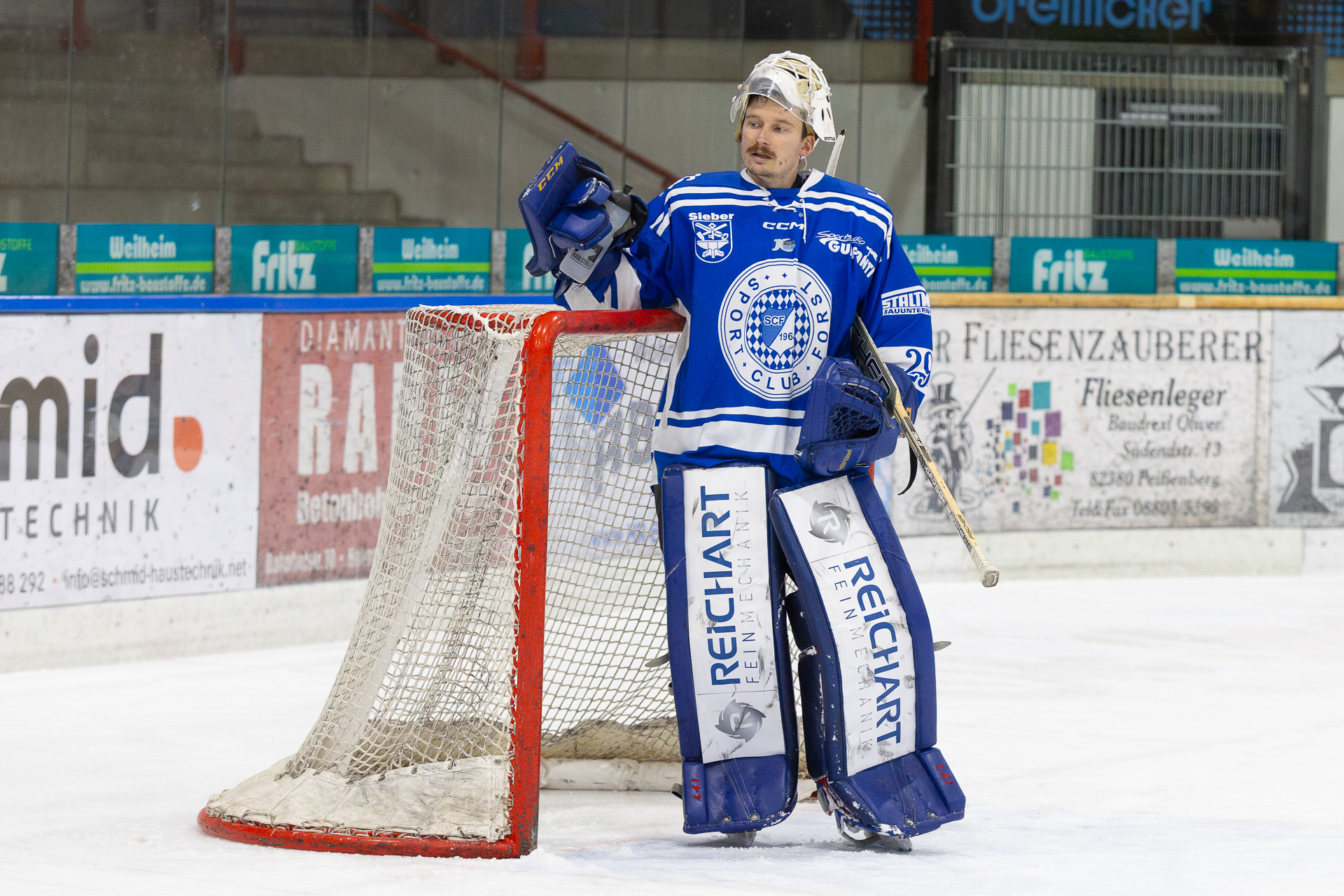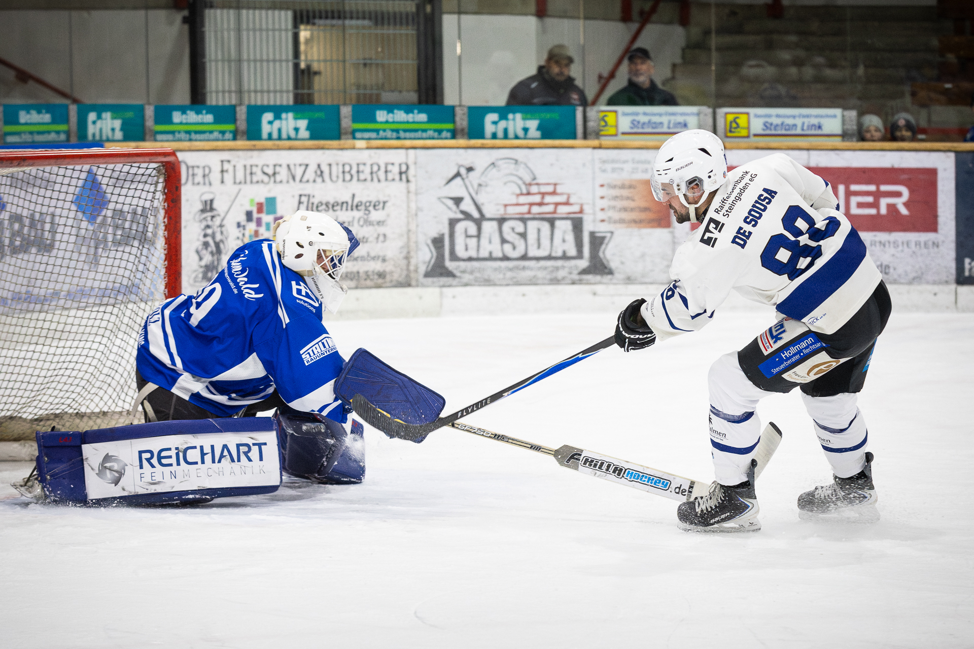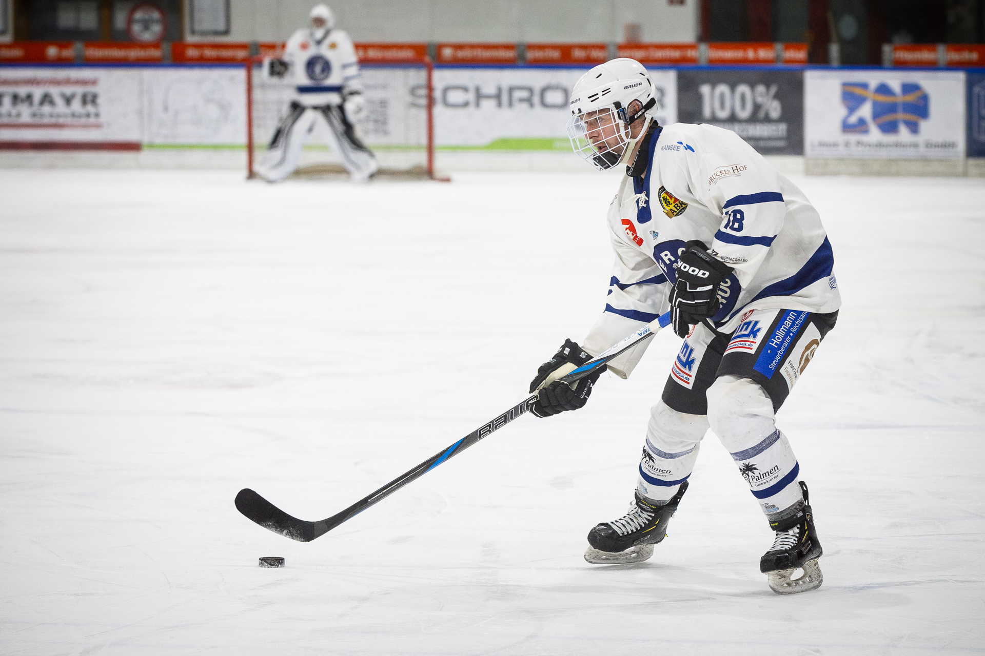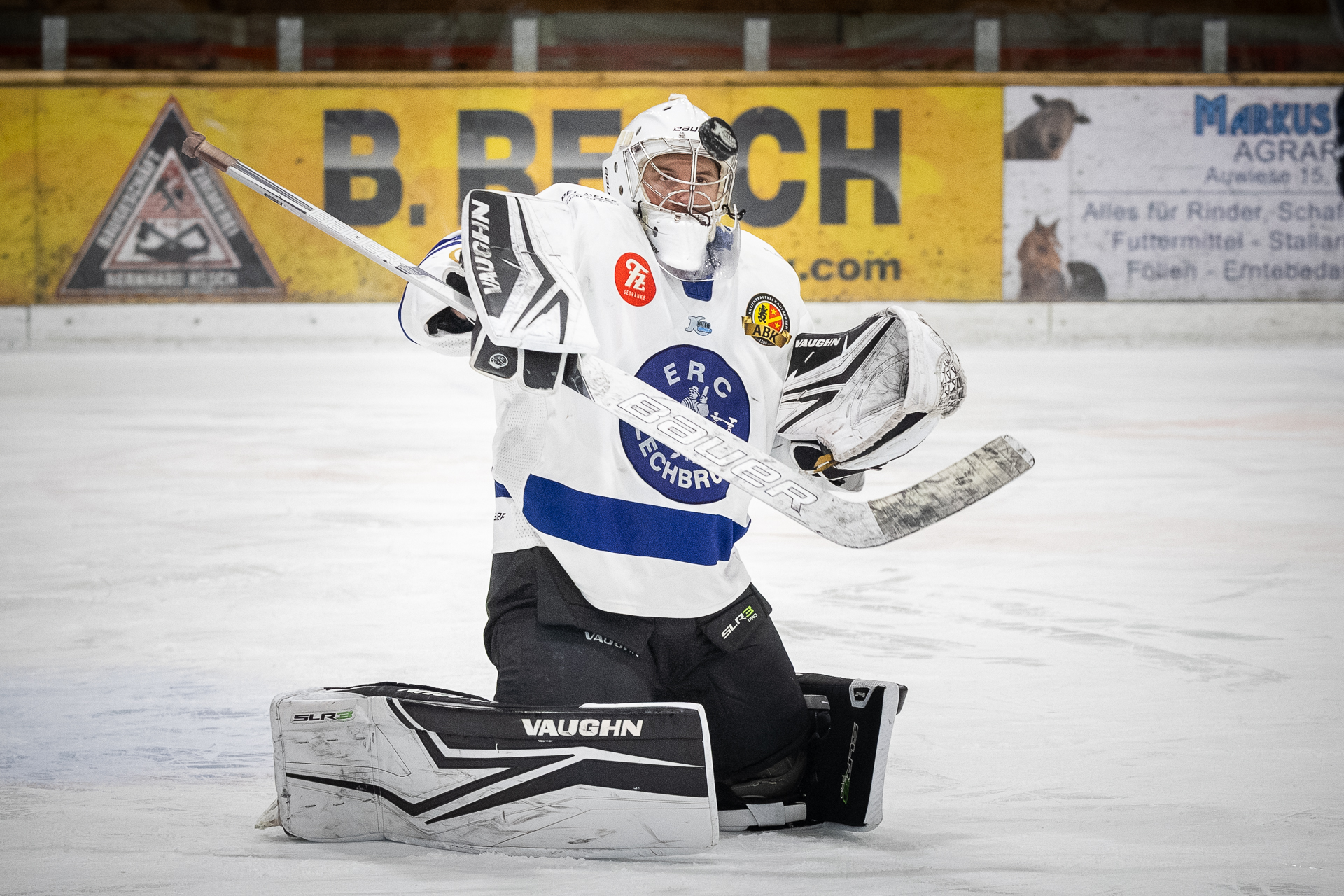 Diepolder EC Peiting trifft gegen EX ECP Goalie Andreas Magg (HC Landsberg)
