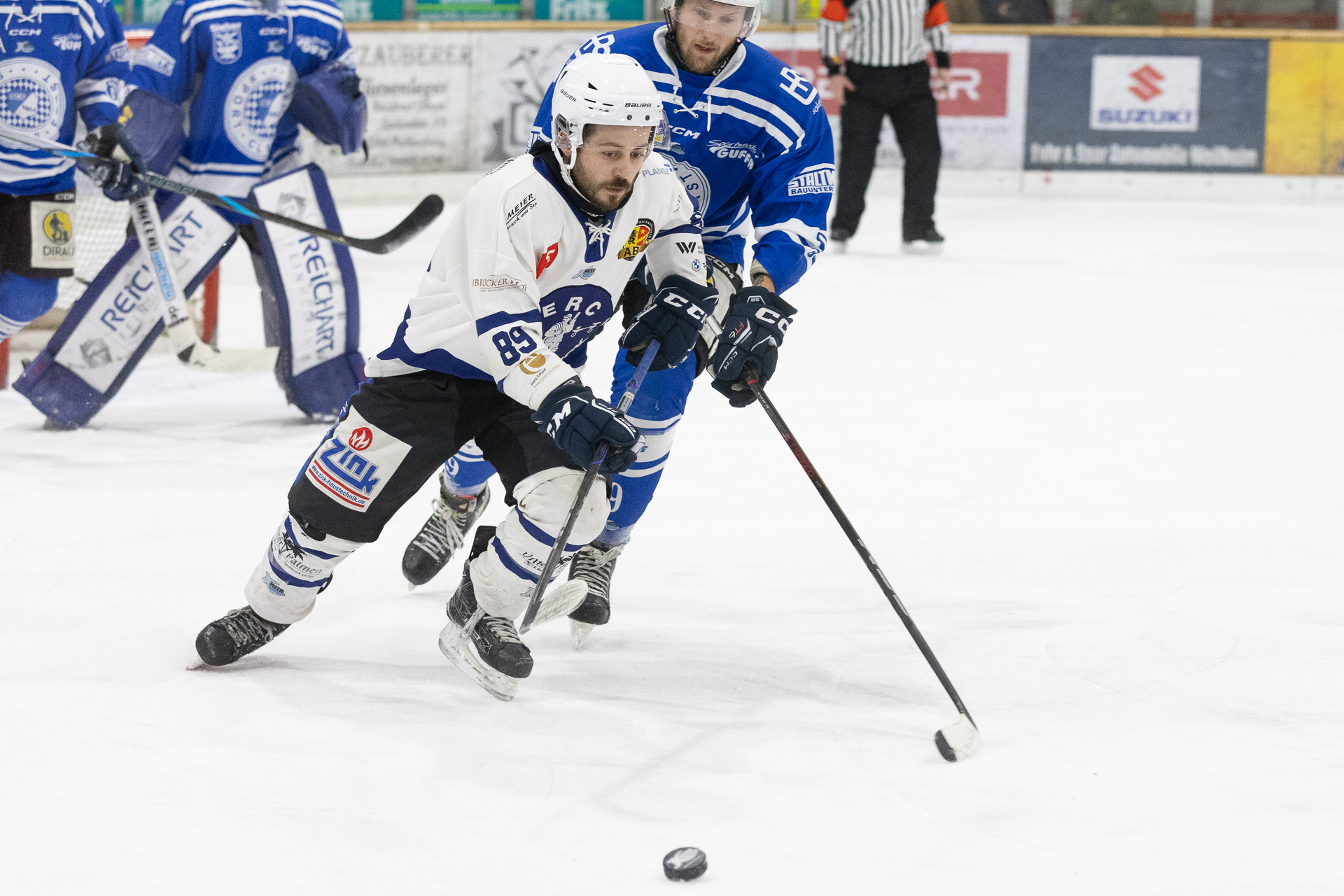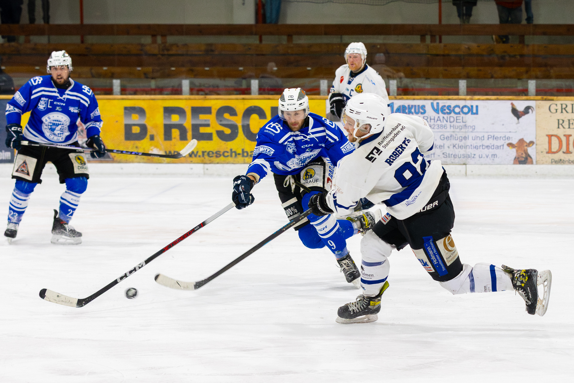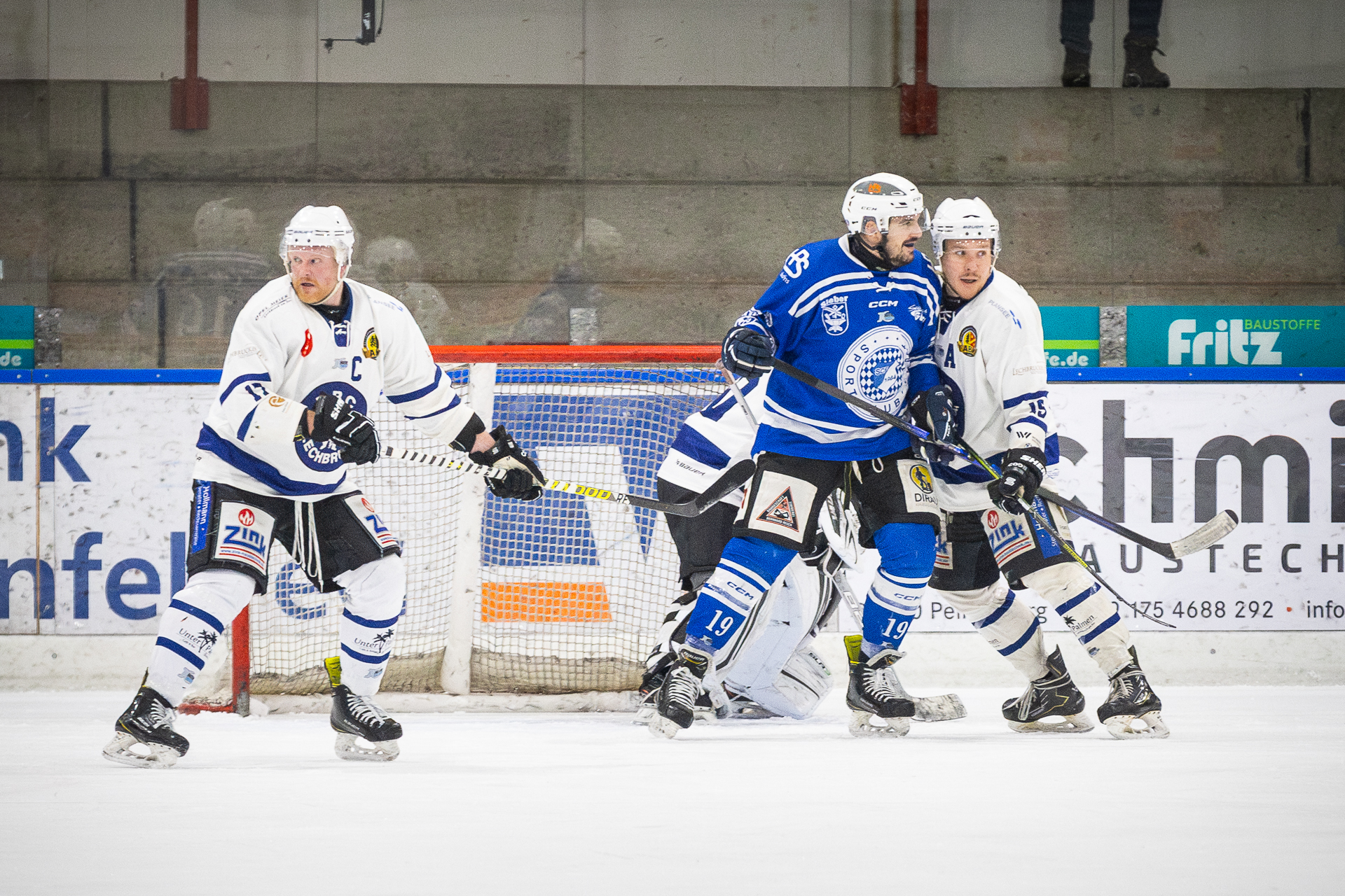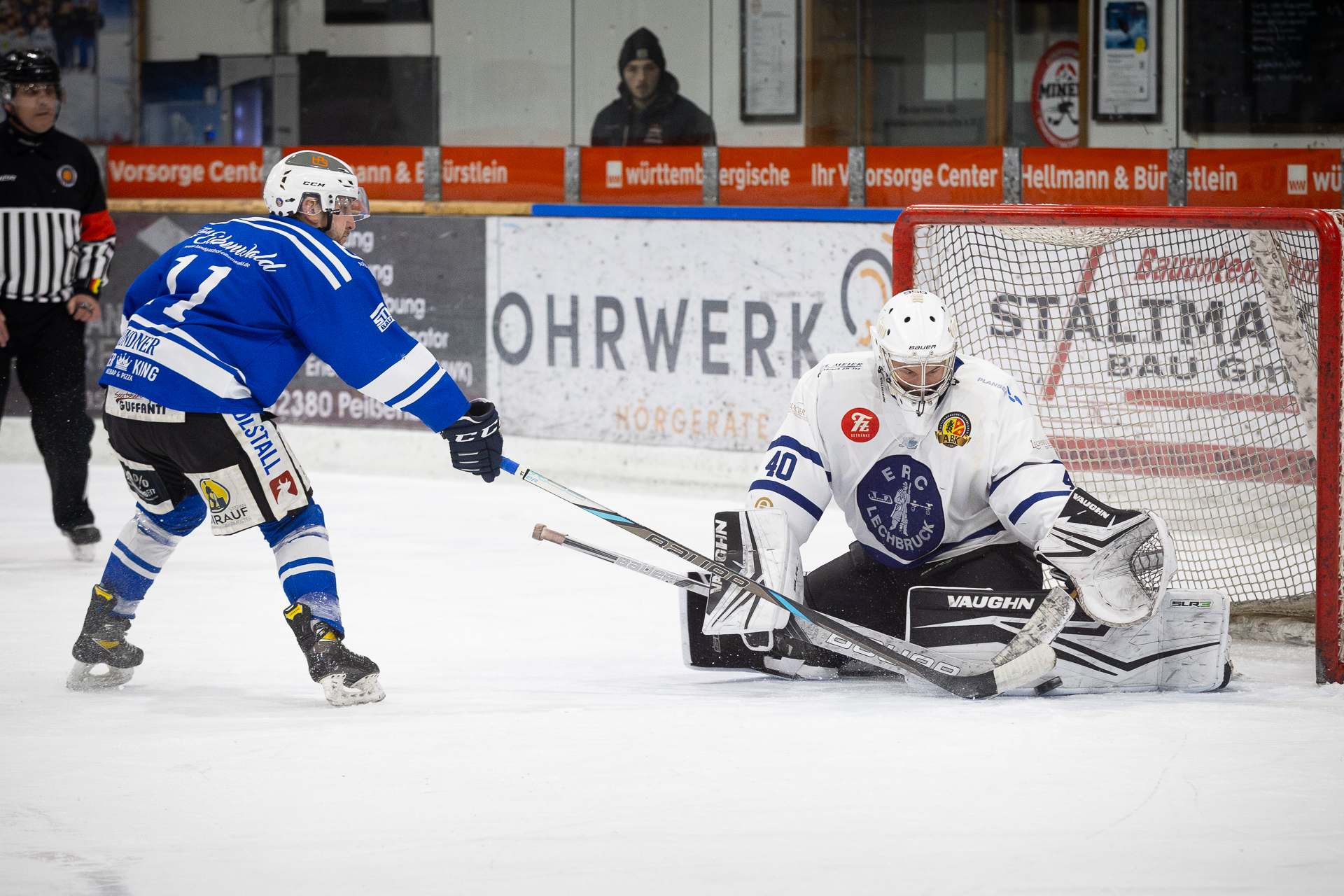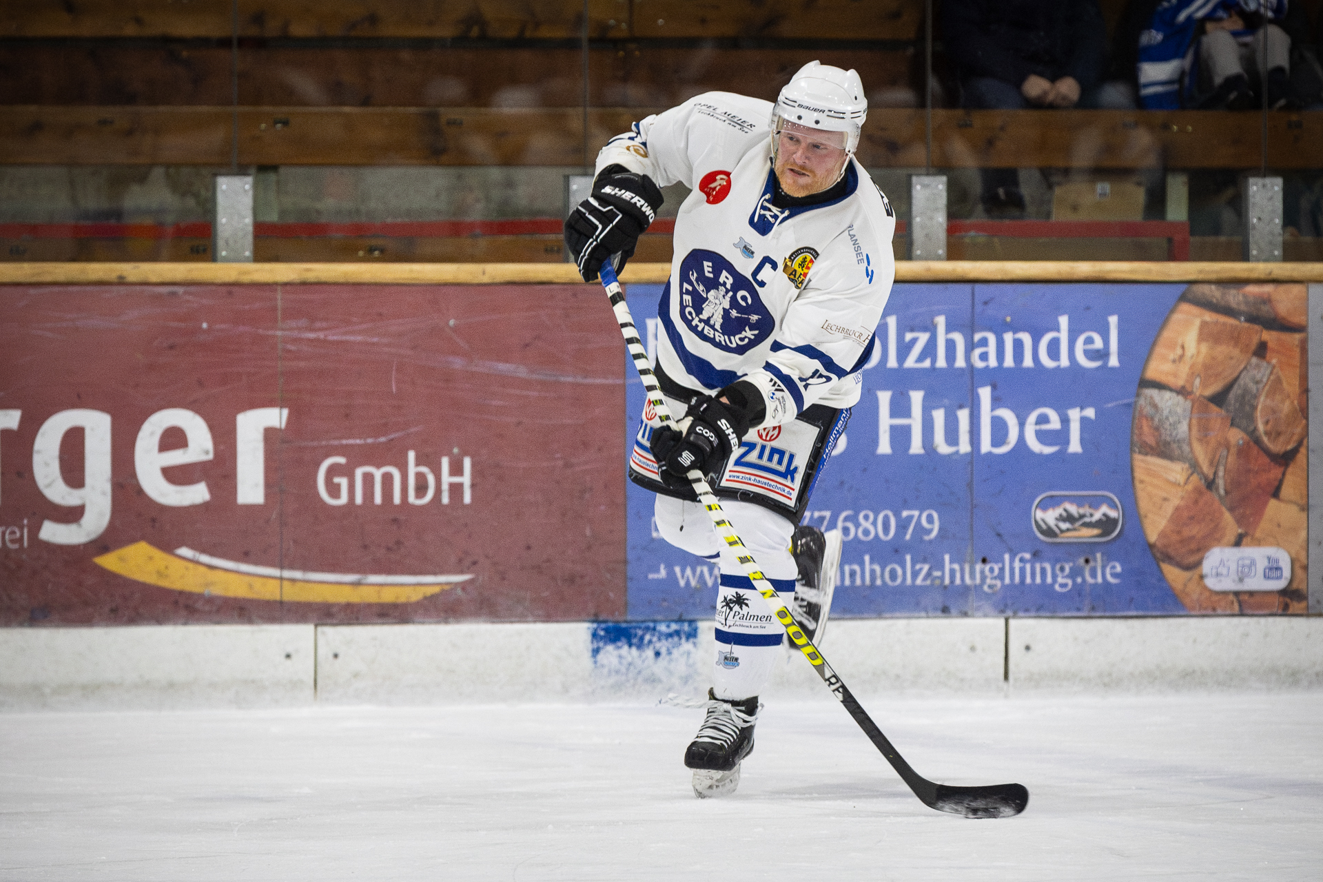 Diepolder EC Peiting trifft gegen EX ECP Goalie Andreas Magg (HC Landsberg)