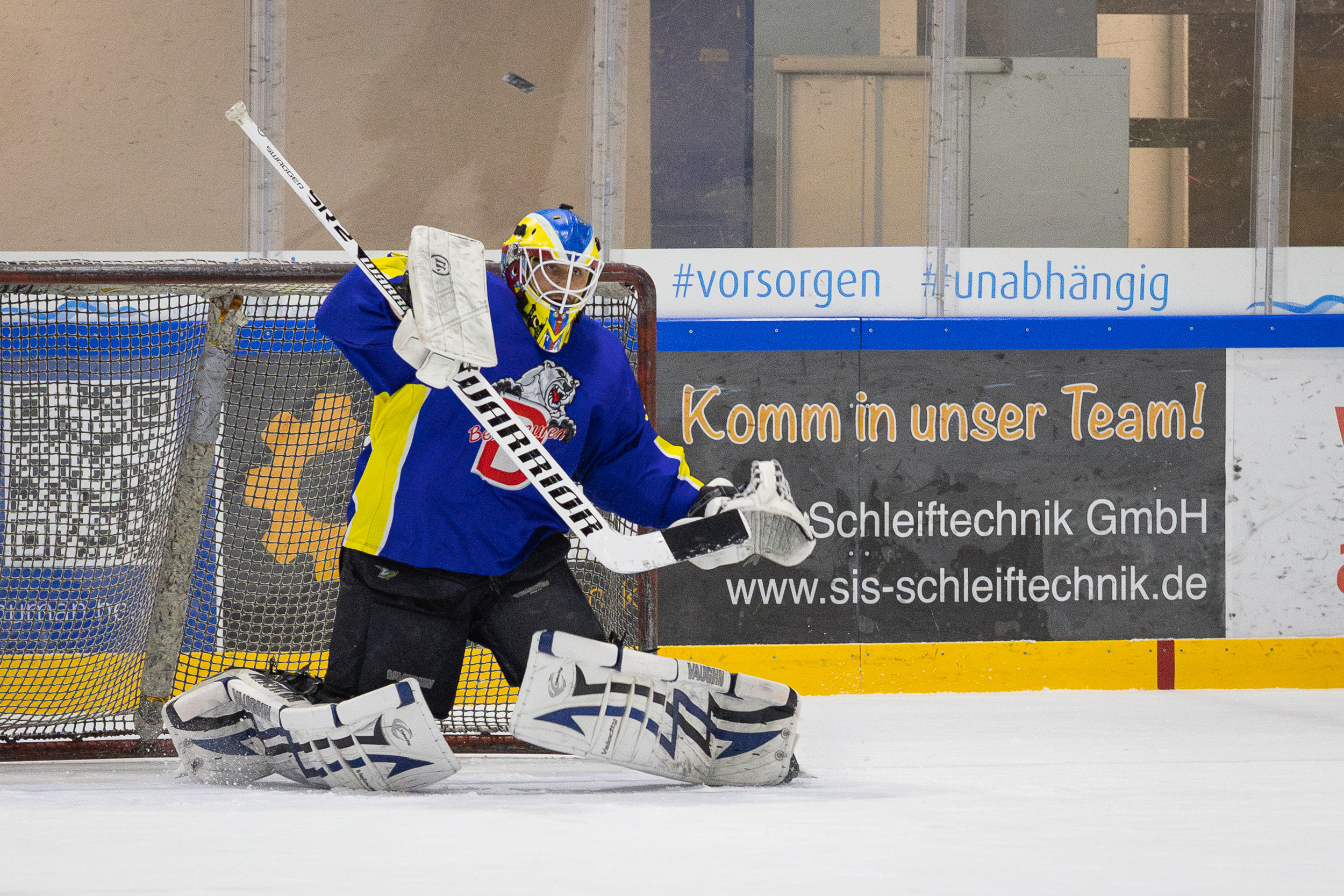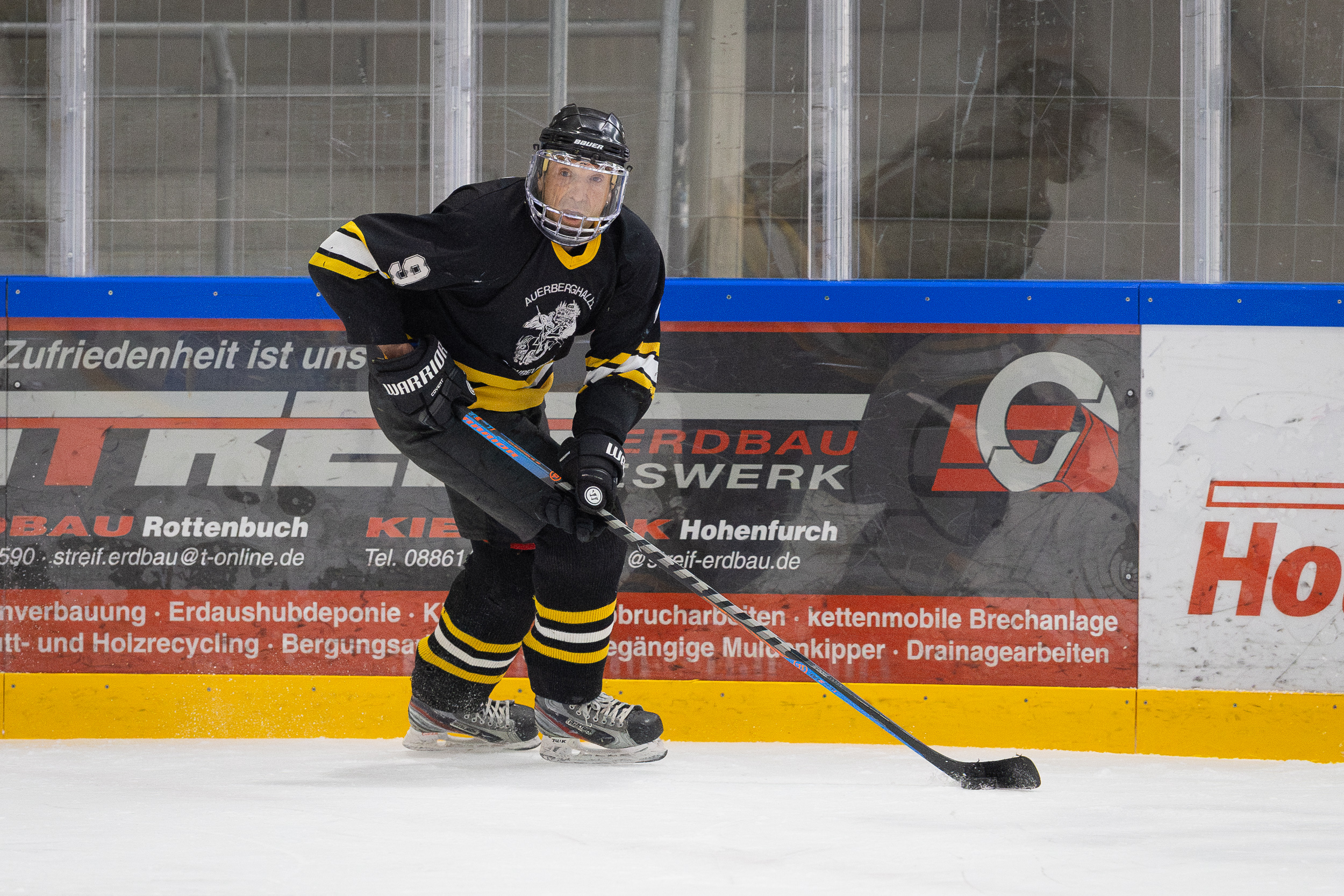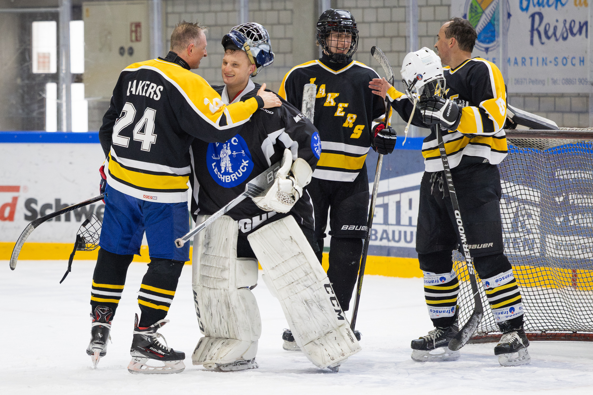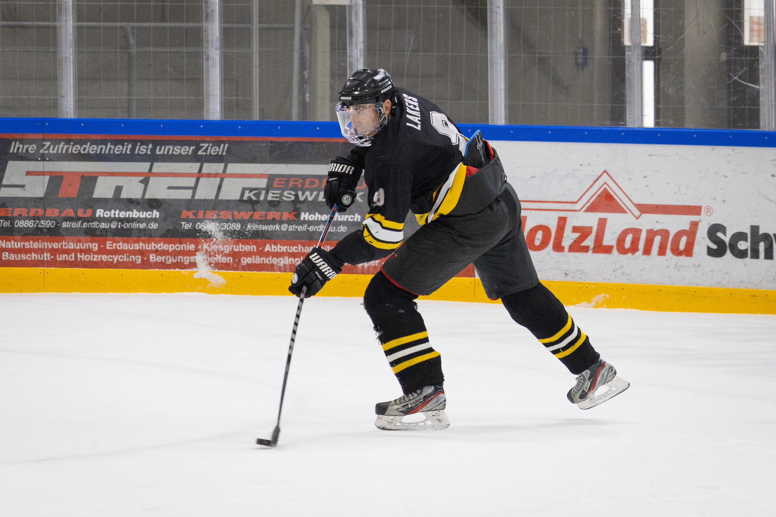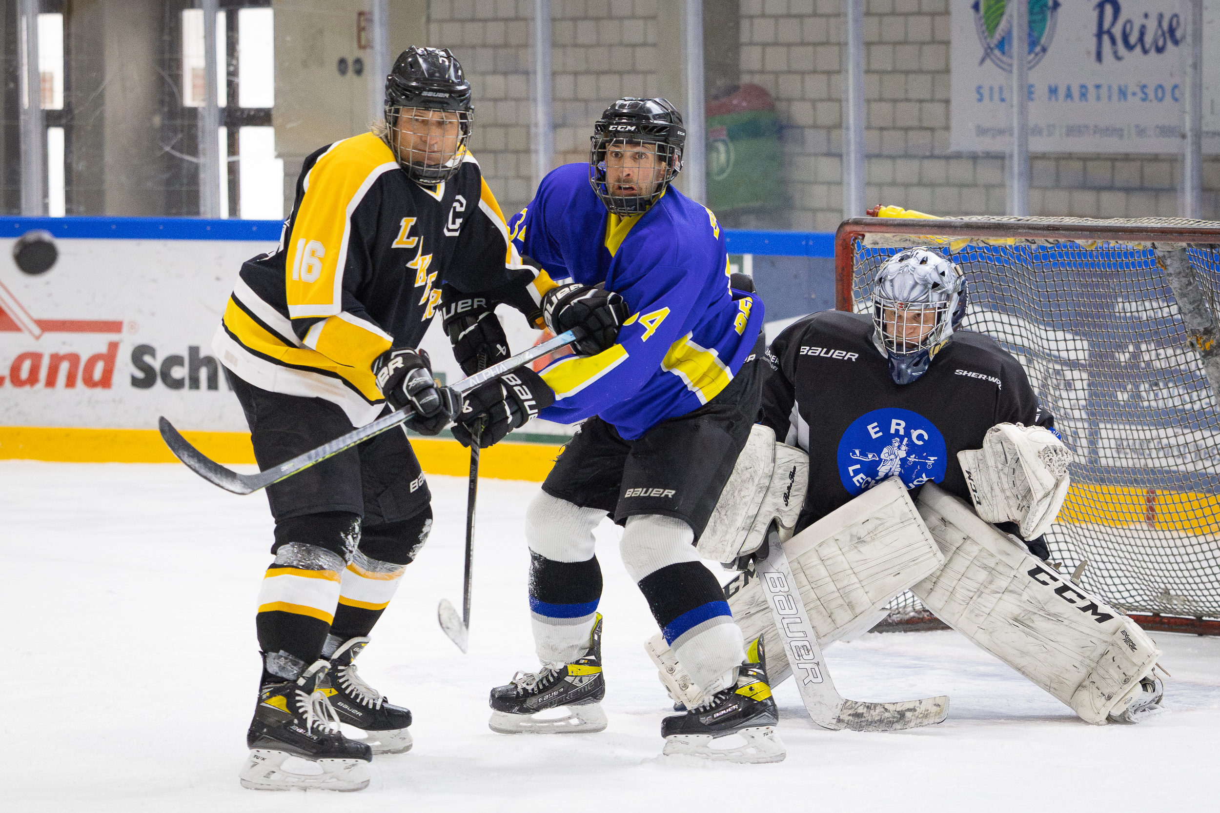 Diepolder EC Peiting trifft gegen EX ECP Goalie Andreas Magg (HC Landsberg)