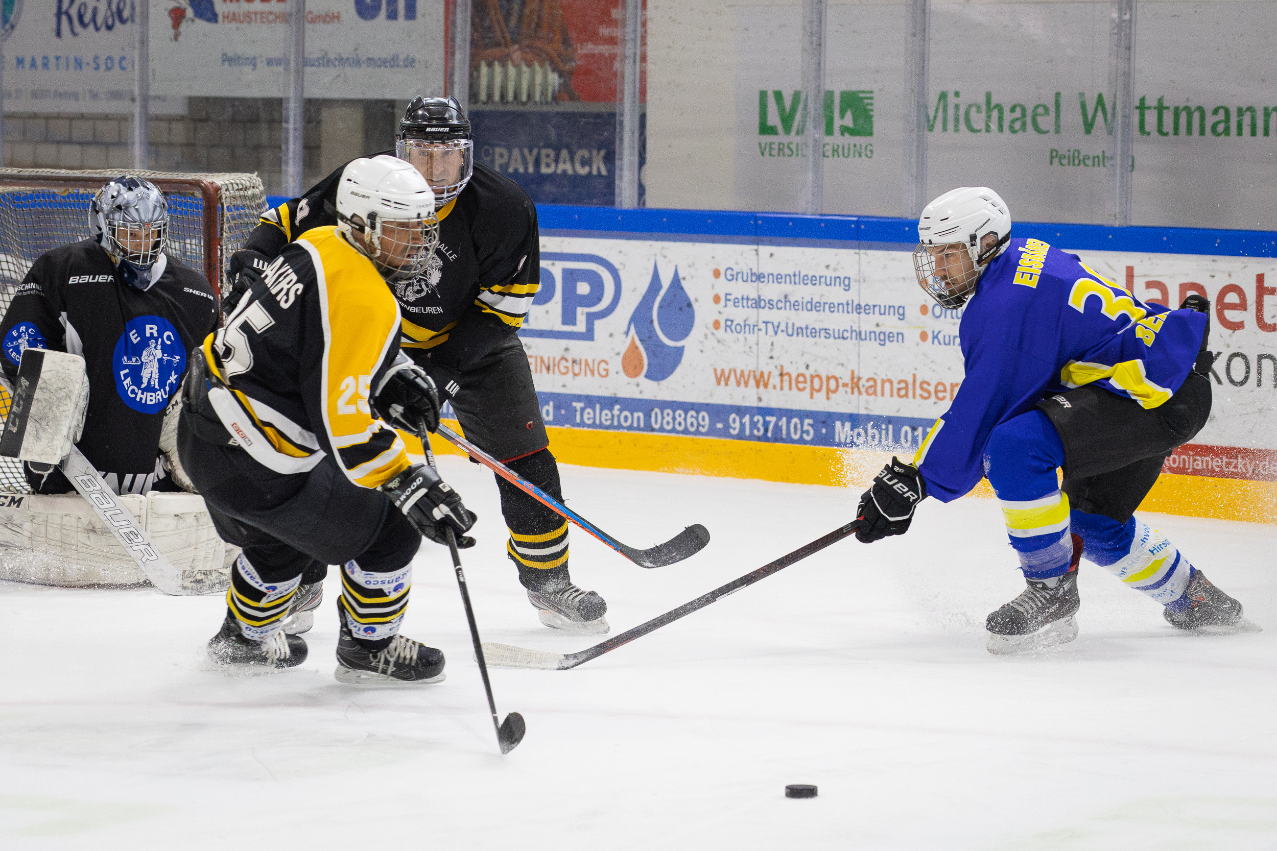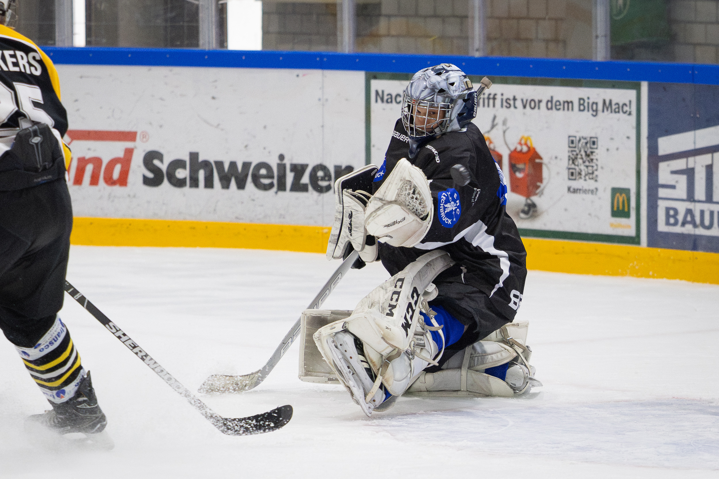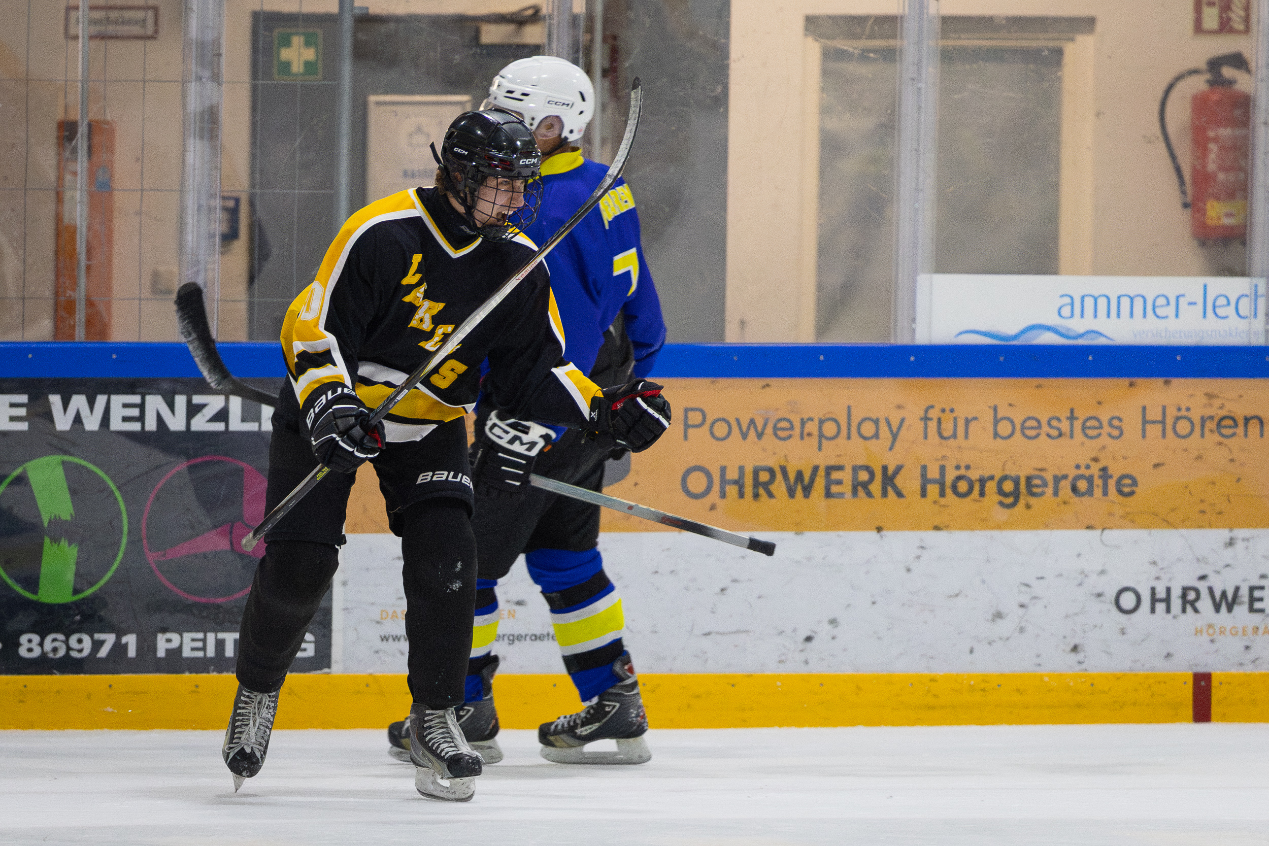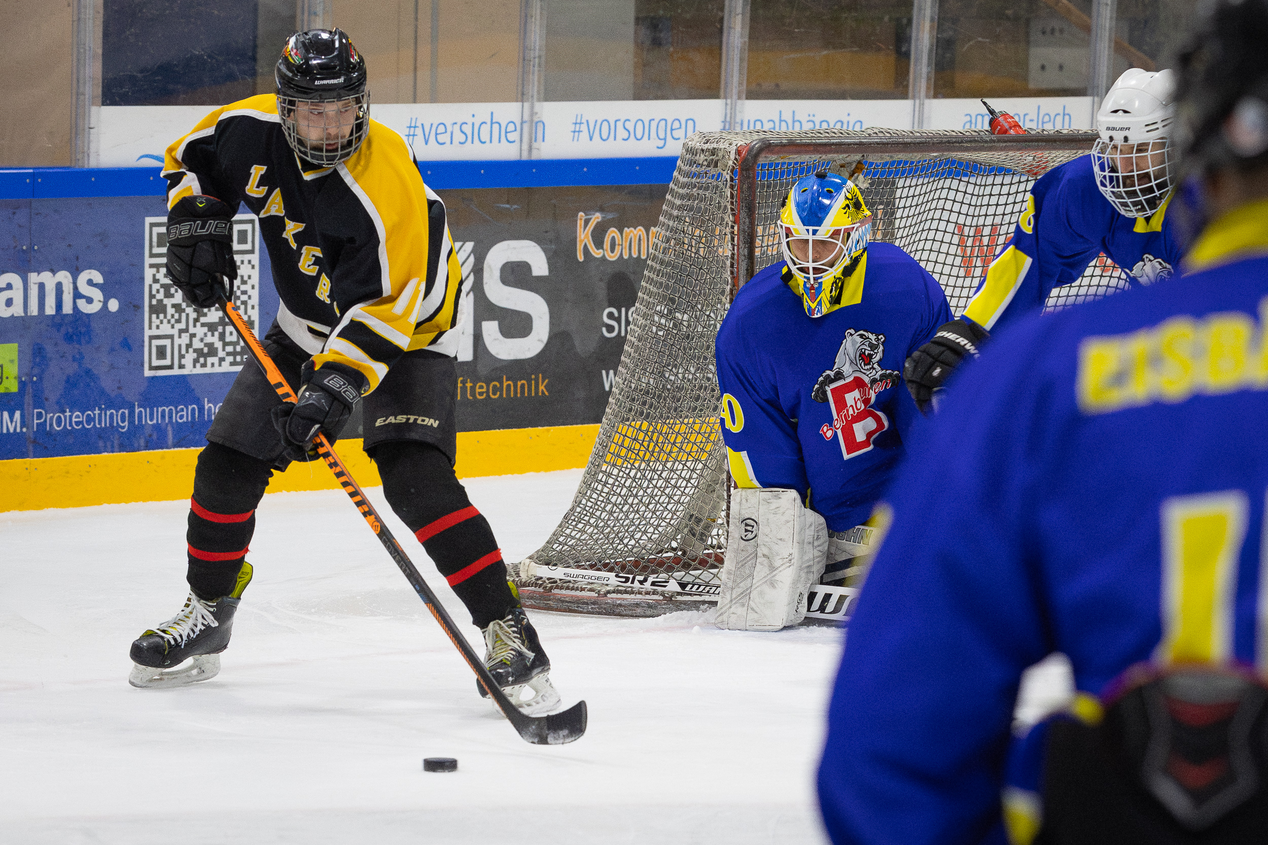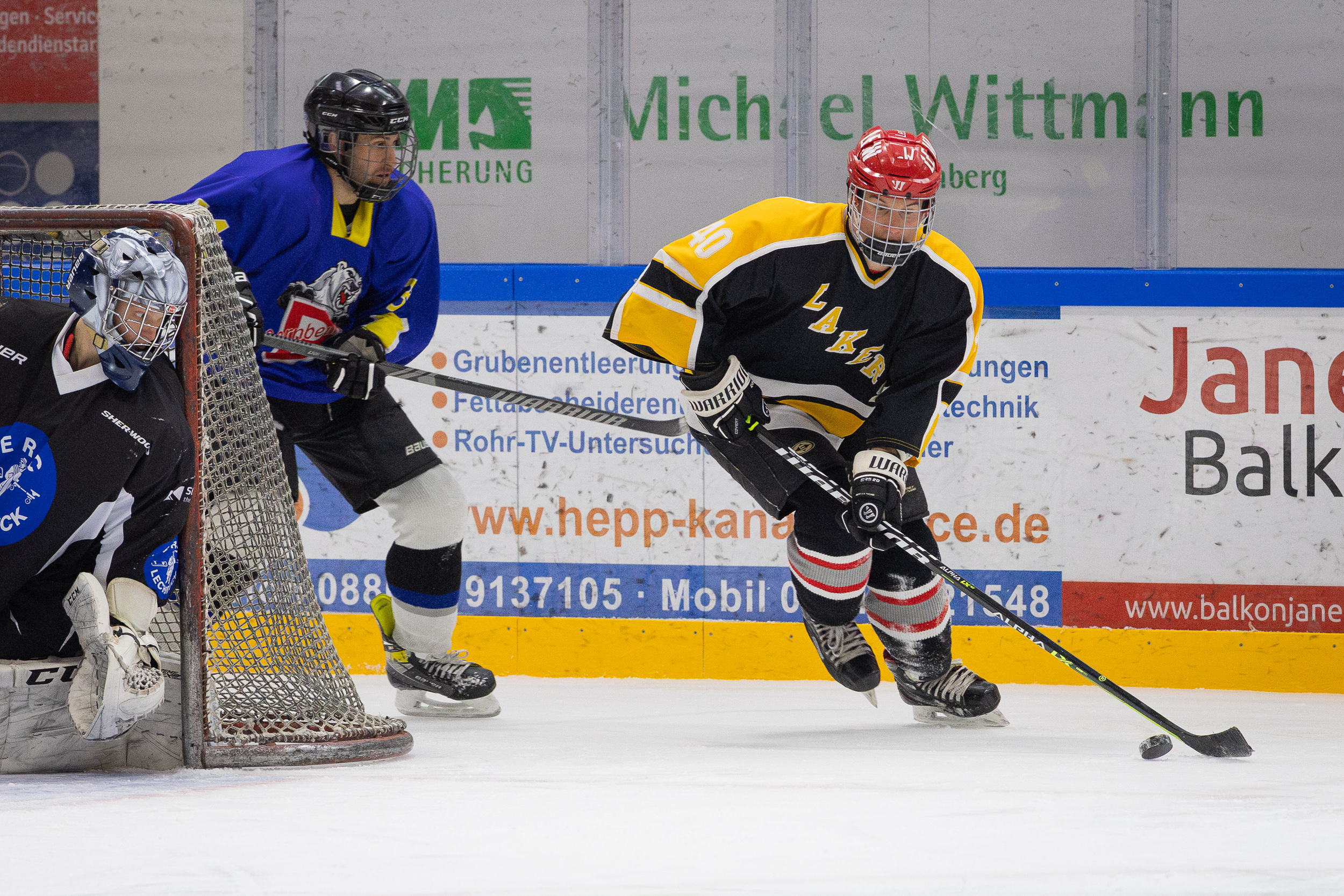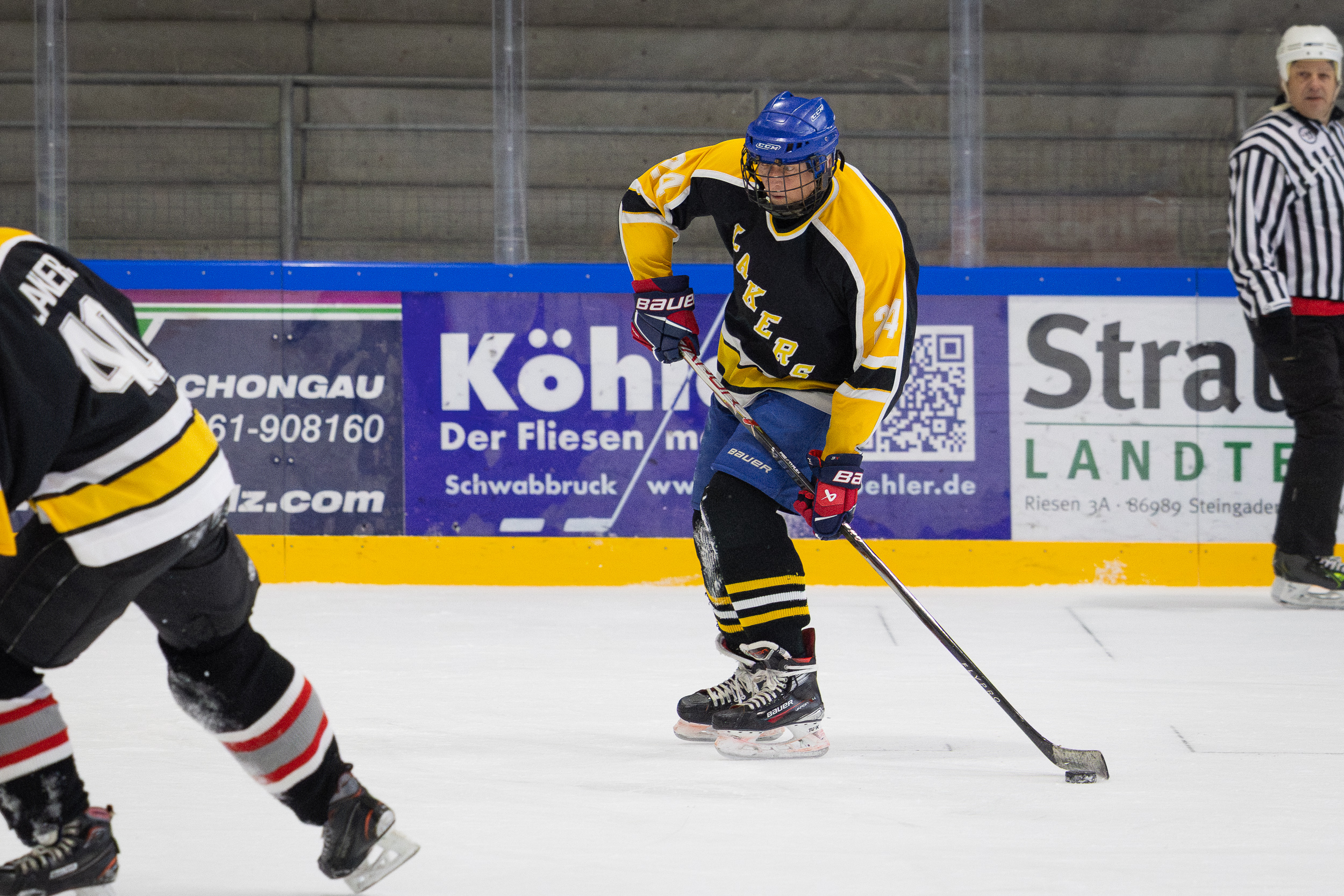 Diepolder EC Peiting trifft gegen EX ECP Goalie Andreas Magg (HC Landsberg)