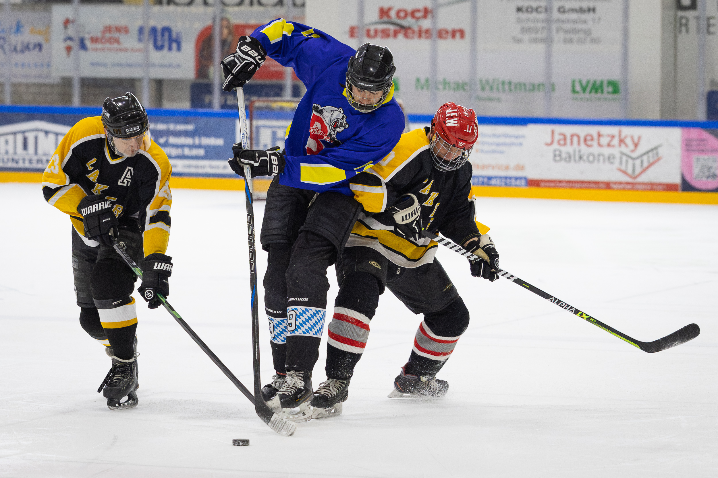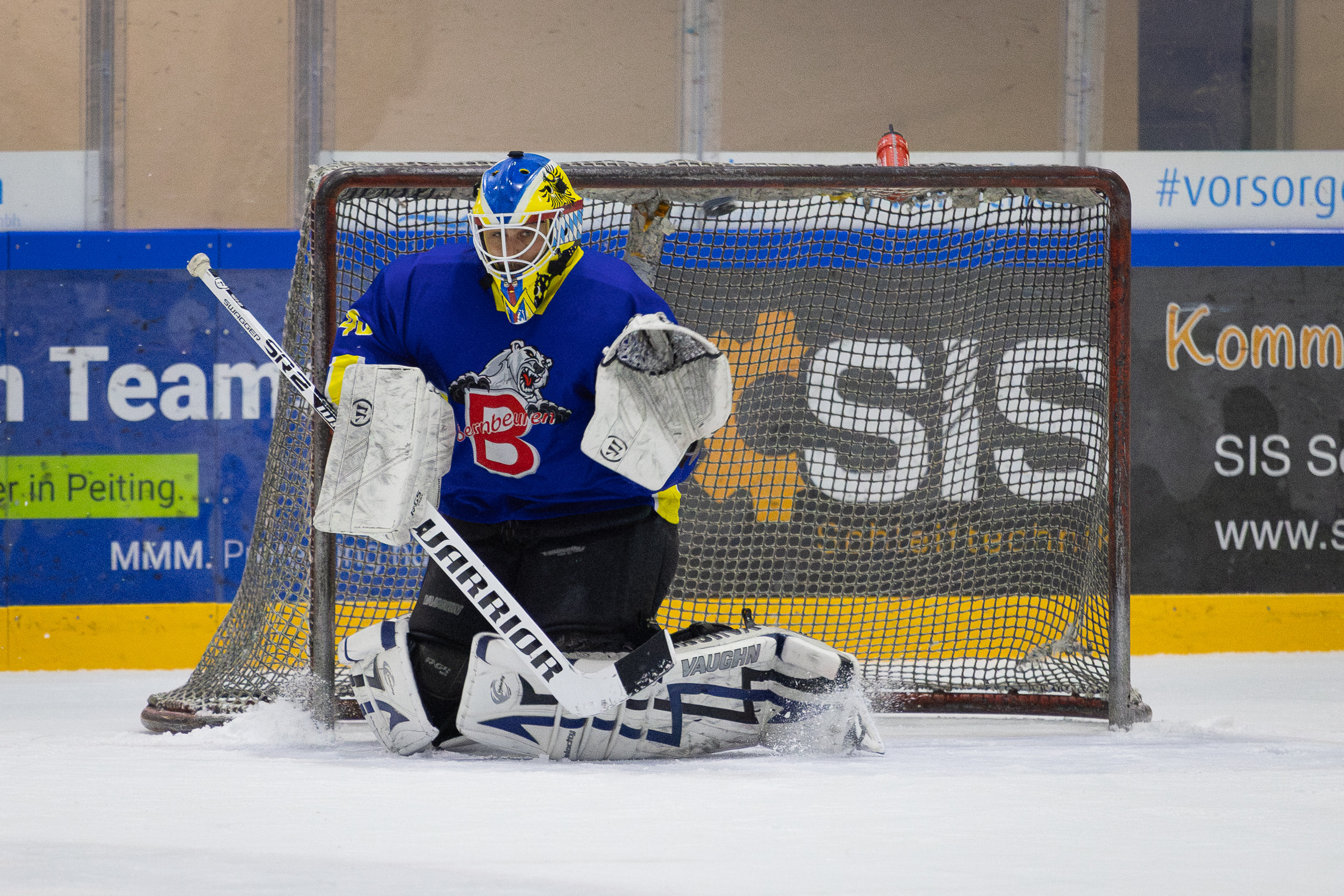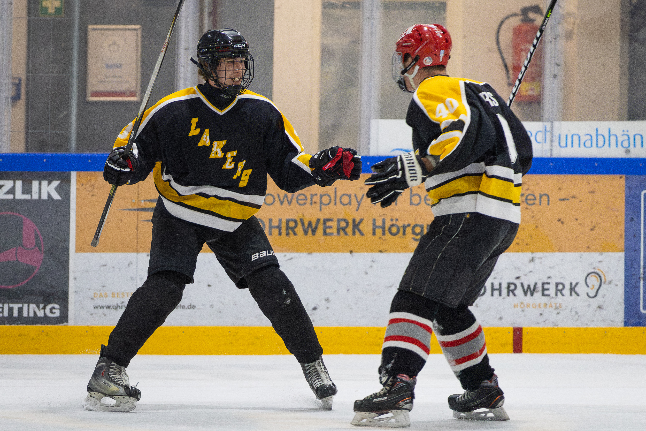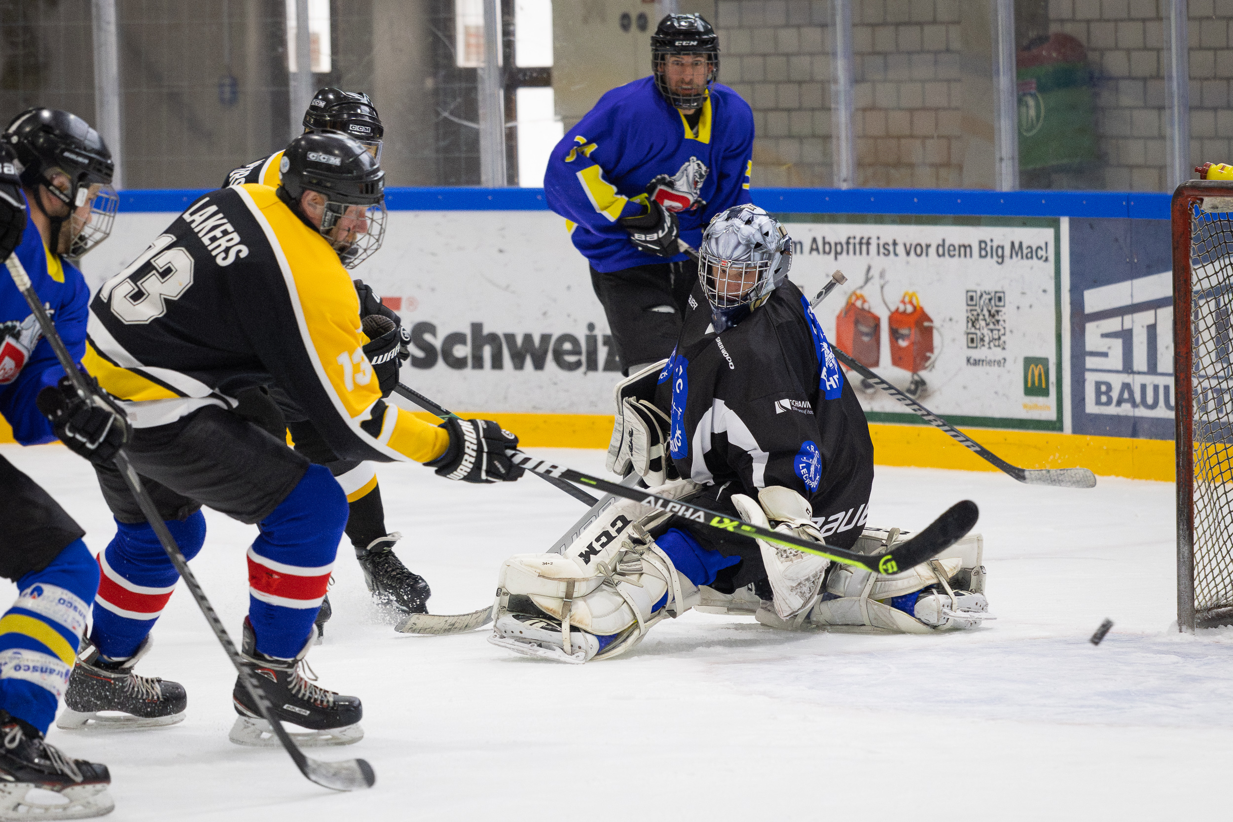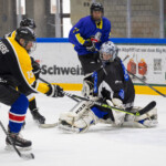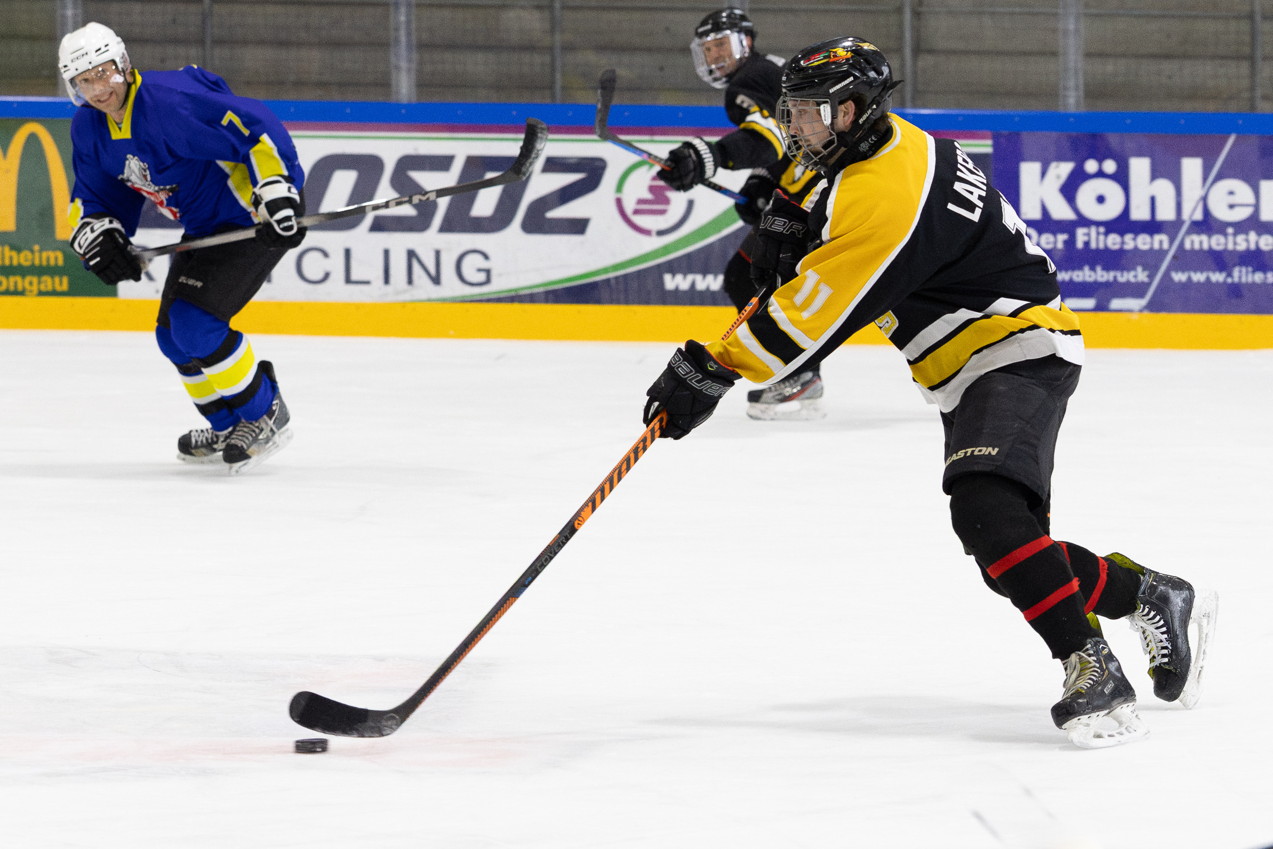 Diepolder EC Peiting trifft gegen EX ECP Goalie Andreas Magg (HC Landsberg)