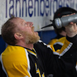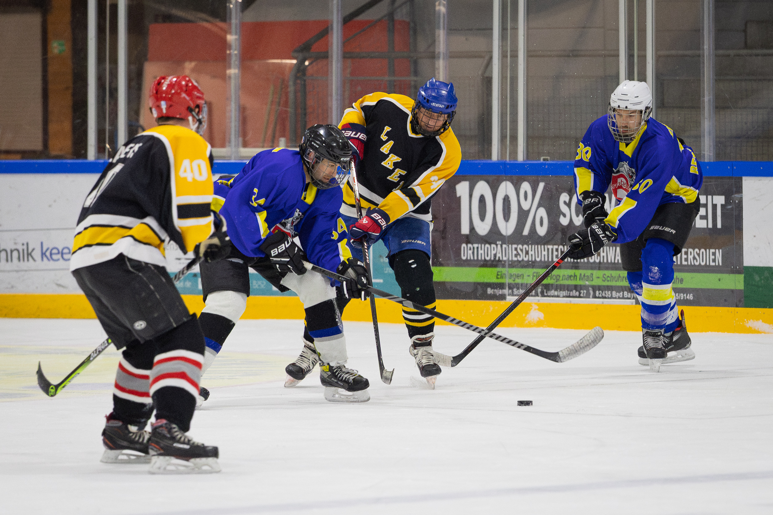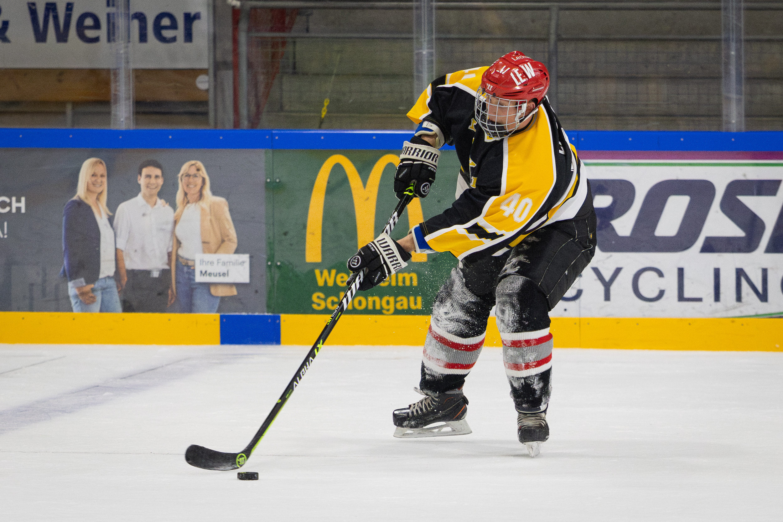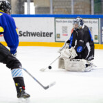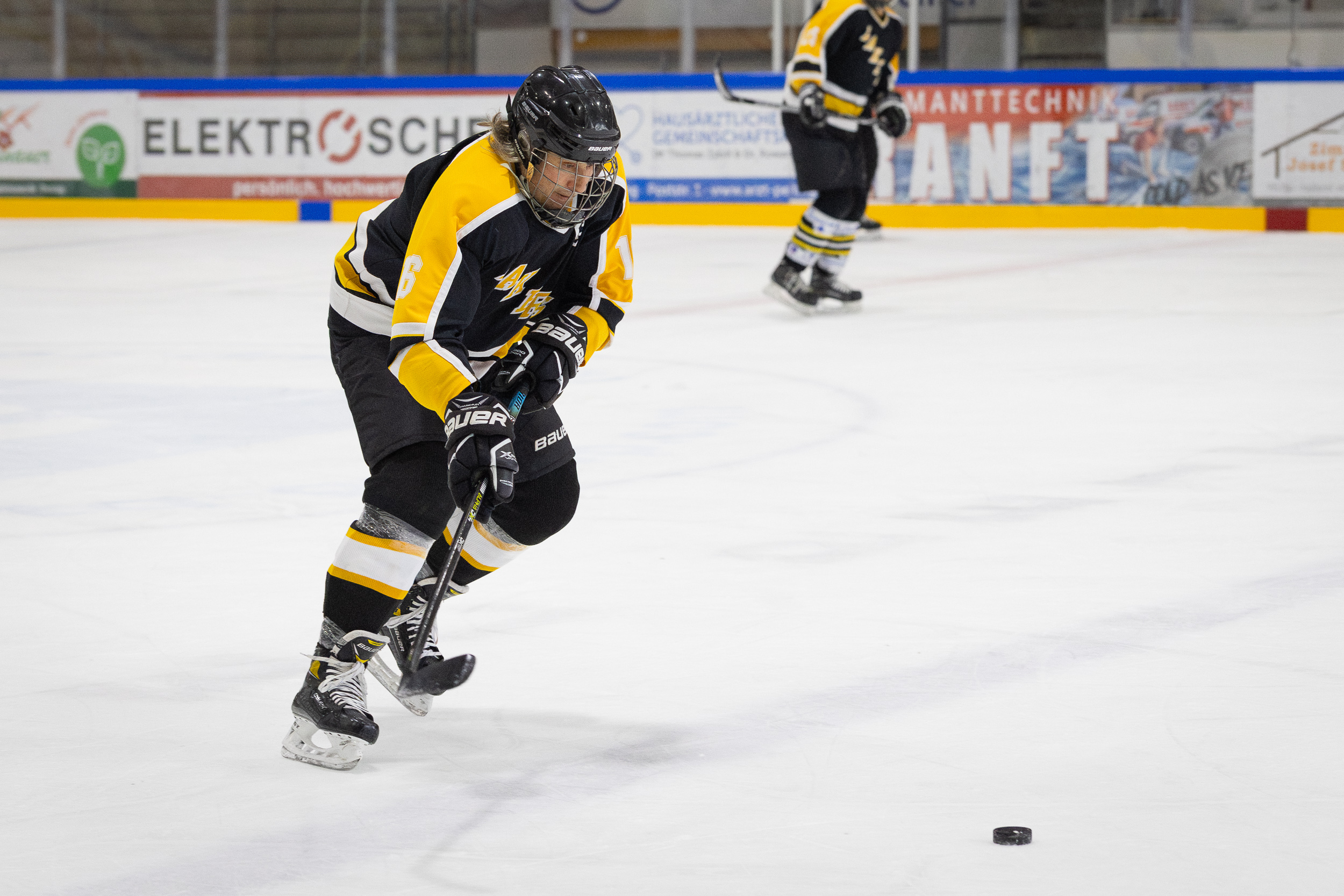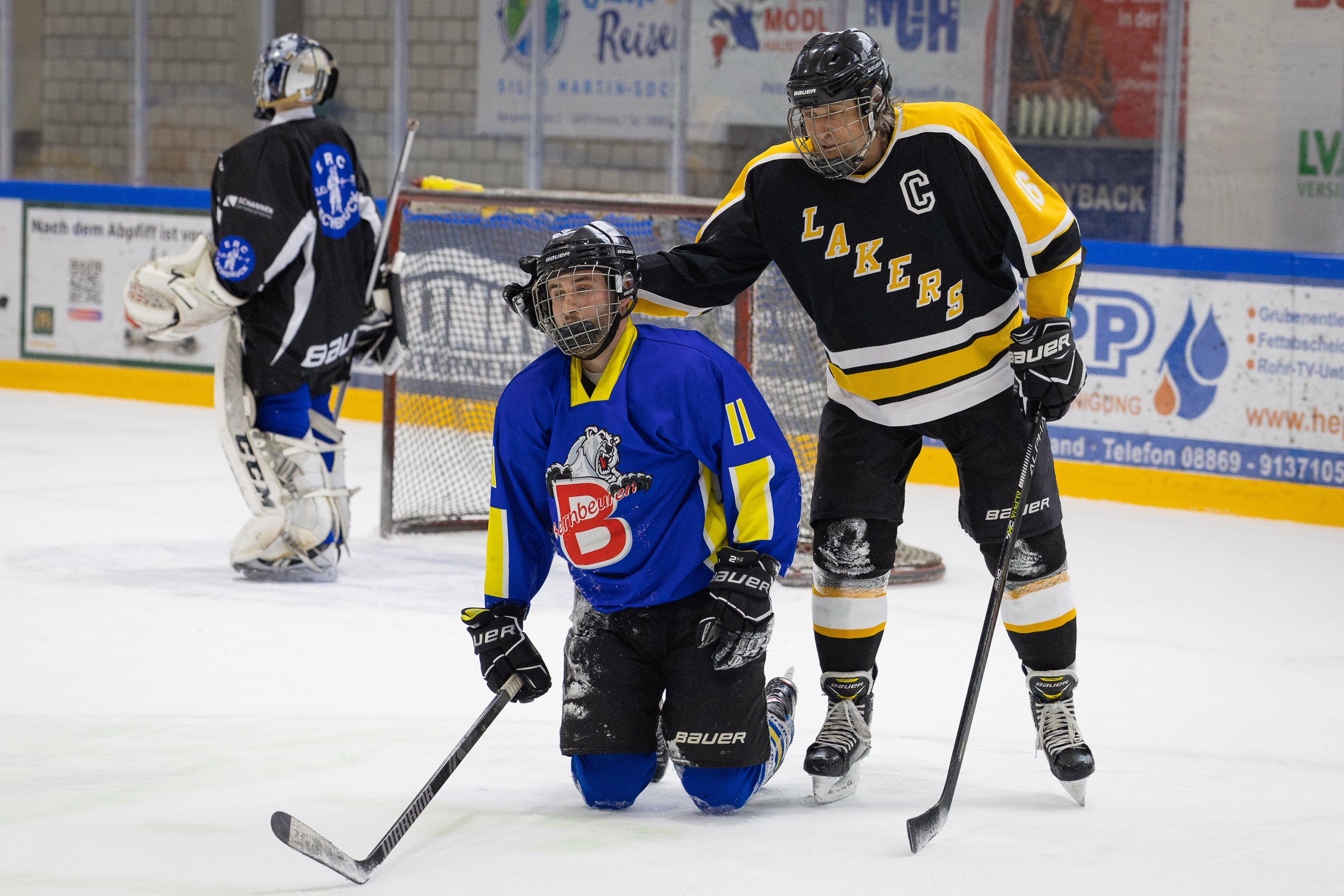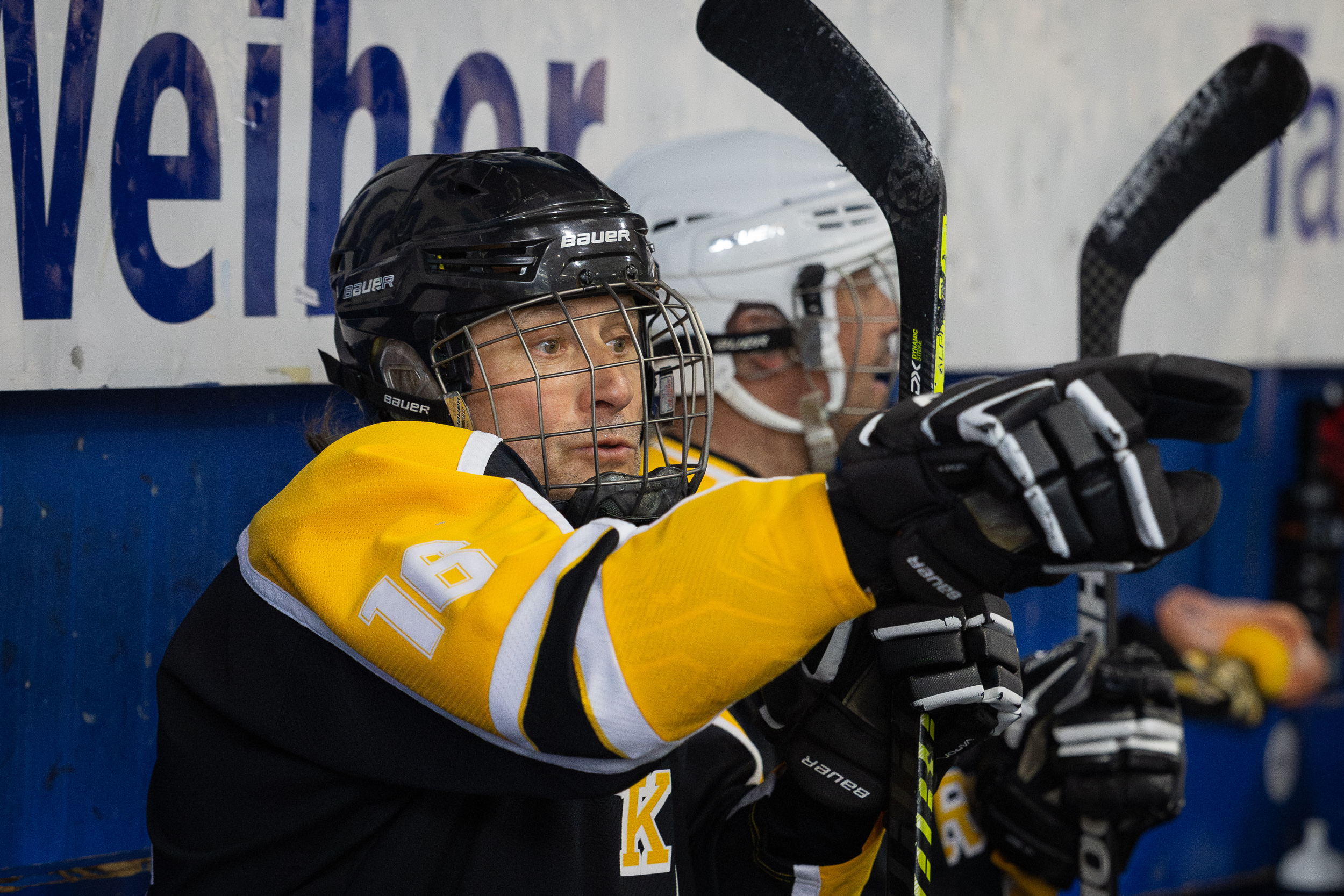 Diepolder EC Peiting trifft gegen EX ECP Goalie Andreas Magg (HC Landsberg)