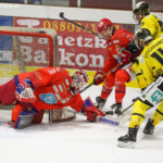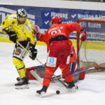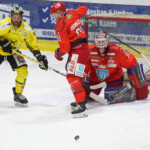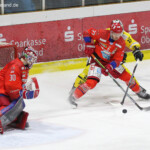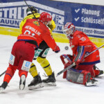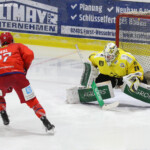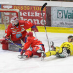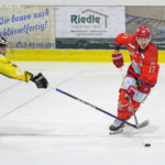 Diepolder EC Peiting trifft gegen EX ECP Goalie Andreas Magg (HC Landsberg)